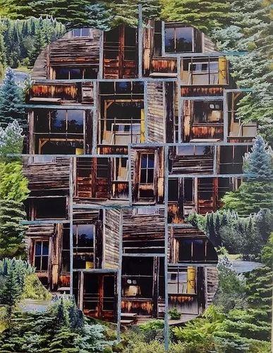 J. McHugh has been creating unique collages for over 14 years. His innovative approach combines traditional techniques with modern aesthetics, resulting in captivating artwork that invites observation and comment.